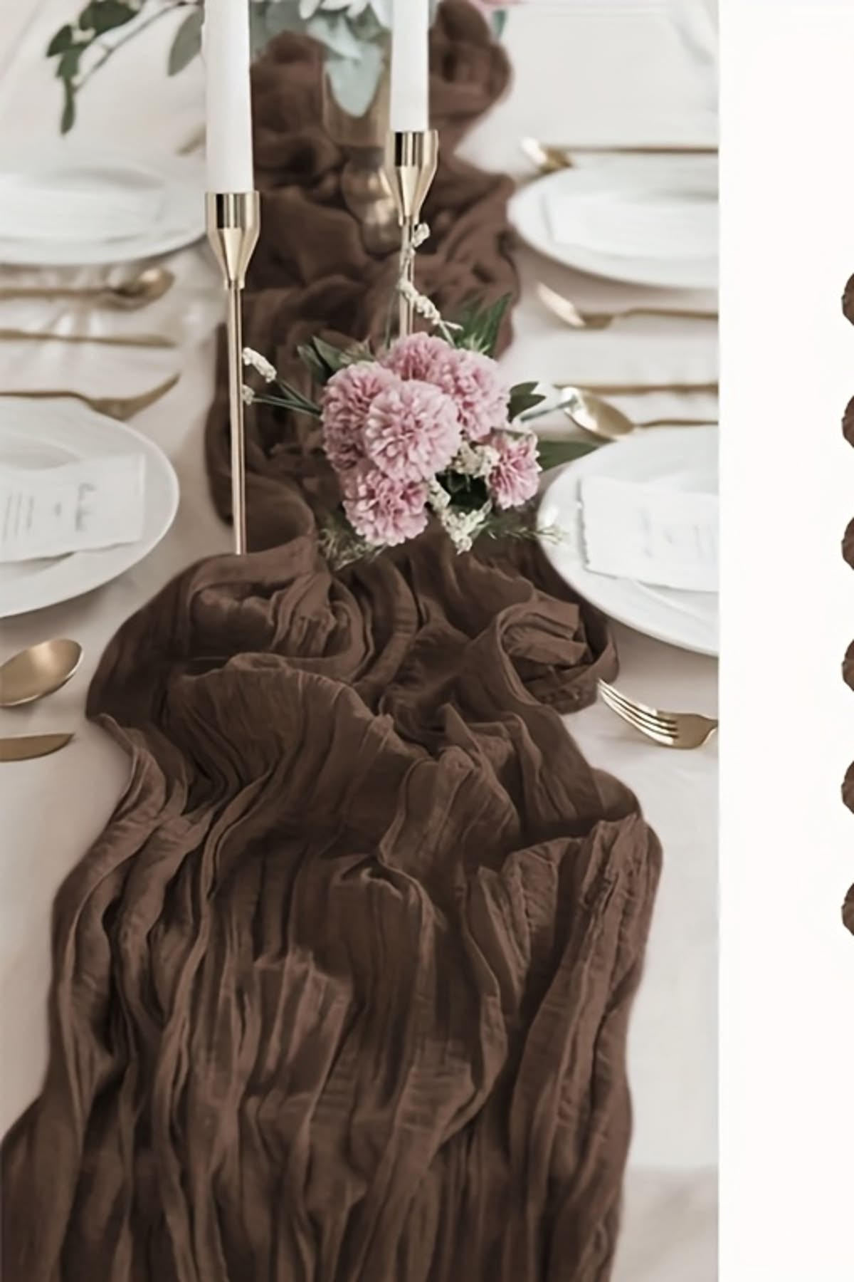 Běhoun na stůl s elegantní vrásčitou texturou a tenkým vzhledem můžete umístit na jednoduché dřevěné stoly pro úchvatný rustikální vzhled nebo rozdělit přes ubrusy a ubrusy s stolními nástavci, květinovými vázami, svíčkami nebo stolní podestýlkou pro úchvatný dekorativní nádech.