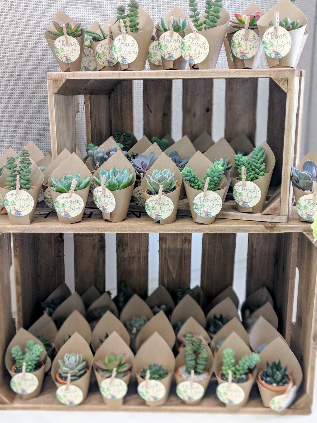 Sukulenty si množíme a pěstujeme sami, máme několik druhů. Na přání můžeme připíchnout poděkování, zabalit do hnědého papíru, nebo obalit jutovou a ozdobit krajkou, apod.....